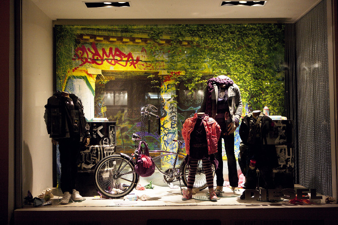 For 3 years at Diesel I was a window installer and the mannequin styling guru for NYC. Elaborate as all things Diesel is, their windows were over the top and extravagant. I installed windows for the 5 Diesel stores open at the time.
